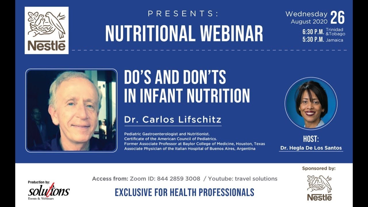 NUTRITIONAL WEBINAR: Do’s and Don’ts in infant nutrition Wednesday August 26 2020 6:30 PM (Trinidad & Tobago) 5:30 PM (Jamaica) Host: * Dr. Hegla De…